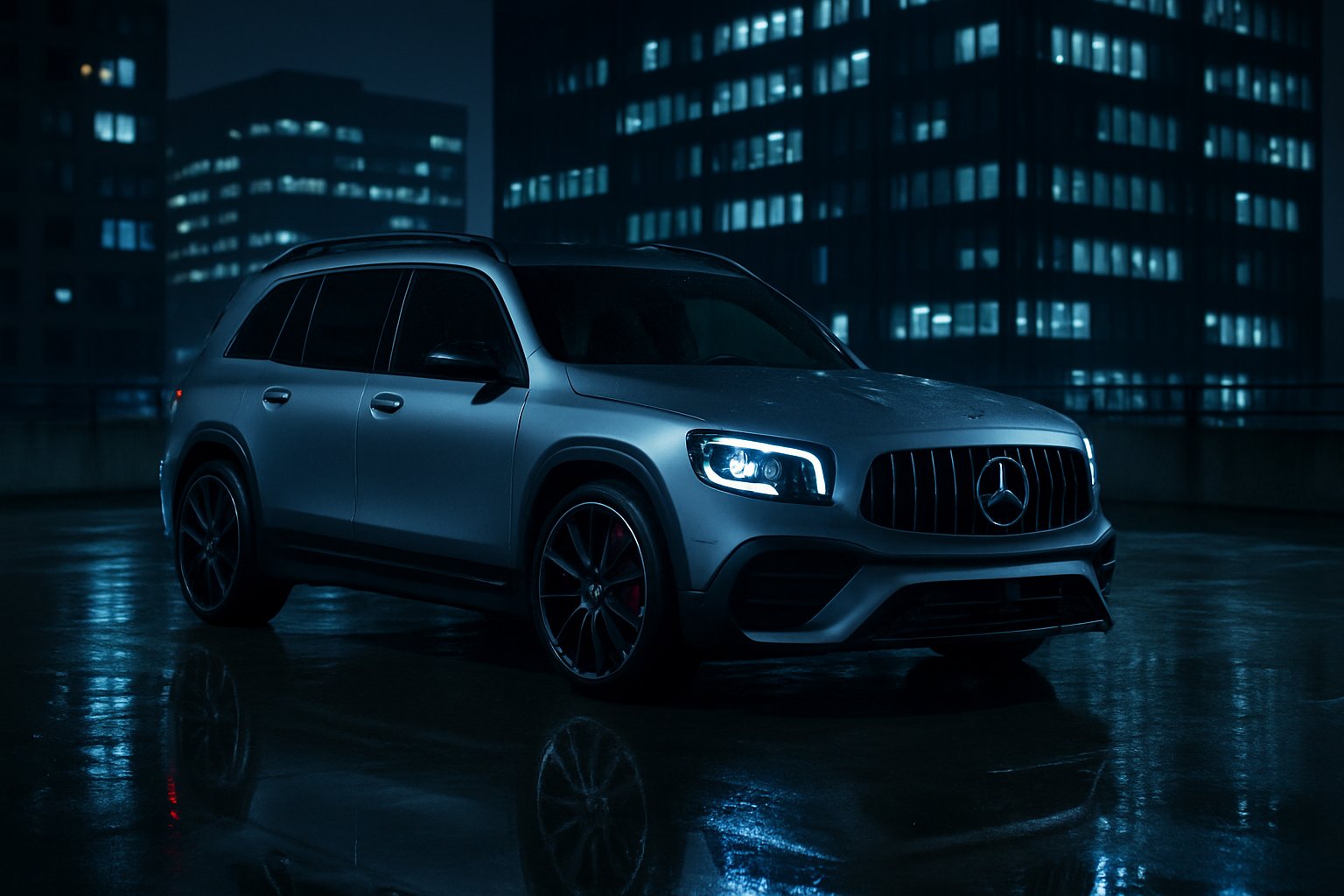 - 7 miejsc / trzeci rząd siedzeń — GLB to jedyny kompaktowy SUV Mercedesa oferujący tę opcję. Dwa dodatkowe miejsca są ciasne dla dorosłych, ale dla dzieci idealne. Jeśli masz rodzinę — warto sprawdzić, czy konkretny egzemplarz ma tę opcję