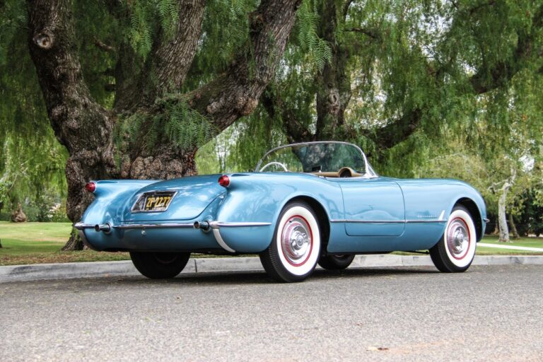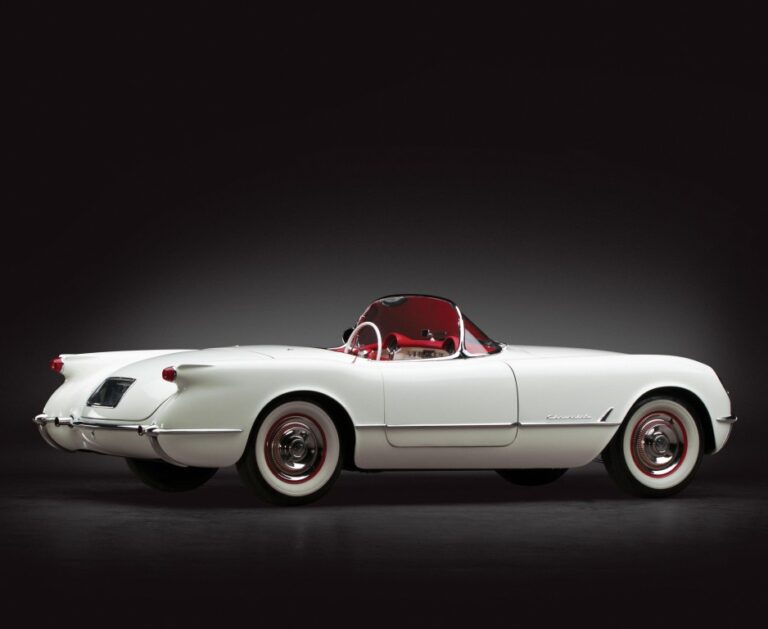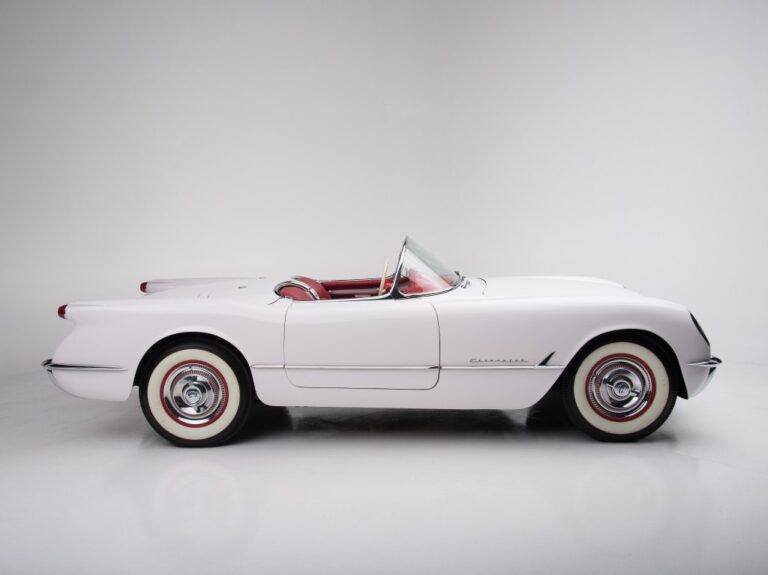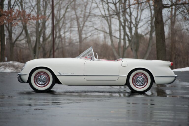 Z profilu, Corvette z 1953 roku różniła się od wszystkiego, co Chevrolet produkował w tamtym czasie. Niska sylwetka, pochylona szyba oraz otwarty design sprawiały, że była odpowiednia dla tych, którzy szukali sportowego, atrakcyjnego pojazdu. Jednak samochód nie miał nawet klamek w drzwiach. Pasażerowie mogli wejść do środka, korzystając z dźwigni zamontowanych na panelach drzwiowych. Było to łatwe do zrobienia, ponieważ nie było bocznych okien. Z tyłu, epoka ogonów fin wznosiła się, więc Harley Earl dodał je, gdy projektował samochód. Z tyłu, małe okrągłe światła tylne i opadająca pokrywa bagażnika były połączeniem stylów amerykańskiego i brytyjskiego. Na szczęście, z tyłu znajdował się niejako zderzak w kształcie chromowanego elementu poziomego. Wszystkie 300 samochodów wyprodukowanych w 1953 roku było białe, więc pan McLean mógł być zadowolony z działań mających na celu obniżenie kosztów.