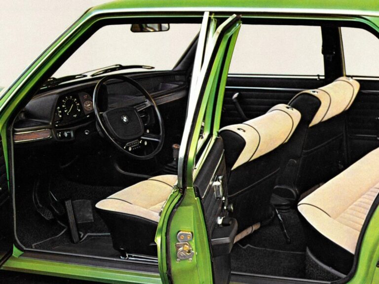 Wewnątrz, niemiecki producent zainstalował parę foteli kubełkowych z przodu oraz ławkę dla trzech osób z tyłu. Deska rozdzielcza wyglądała nowocześnie dzięki centralnej konsoli, a prostokątna tablica przyrządów przed kierowcą była dobrze widoczna. BMW umieściło duże wskaźniki prędkościomierza i obrotomierza na środku, otoczone wskaźnikami poziomu paliwa i temperatury. Z tyłu było wystarczająco dużo miejsca dla trzech pasażerów, chociaż wysoki tunel środkowy ograniczał przestrzeń na nogi dla osoby siedzącej pośrodku.