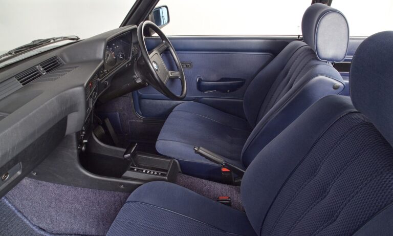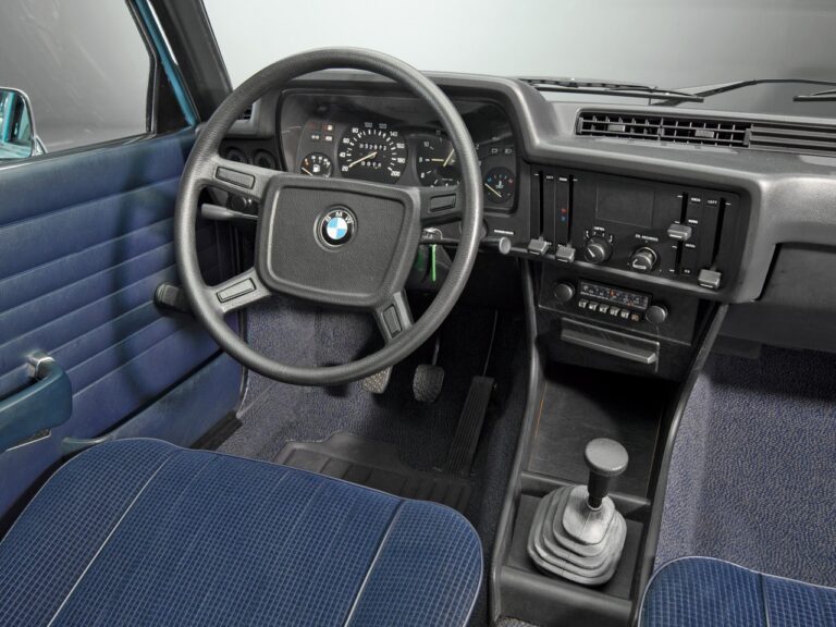 W środku klienci znaleźli czarną deskę rozdzielczą pokrytą winylem z krótkim panelem centralnym nachylonym w stronę kierowcy. Ten sam materiał ozdabiał panele drzwi, podczas gdy fotele były pokryte materiałem. Przed kierowcą znajdował się czytelny panel przyrządów wypełniony prędkościomierzem, obrotomierzem, wskaźnikiem poziomu paliwa i wskaźnikiem temperatury płynu chłodzącego, a także innymi lampkami ostrzegawczymi. Na panelu centralnym E21 znajdowały się sterowania dla systemu HVAC, a radio było na liście opcji. Fotele przednie były smukłe, ale wspierające, odpowiednie nawet dla wyższych osób. Z tyłu natomiast kanapa mogła pomieścić do trzech pasażerów, chociaż przestrzeń na nogi nie była zbyt komfortowa.