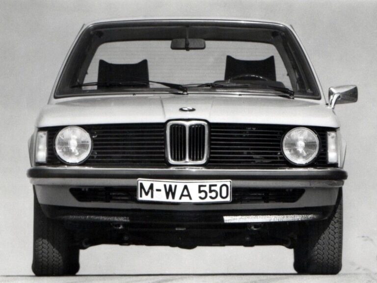 Nowa seria 3, znana w kodzie fabrycznym jako E21, była krokiem naprzód w porównaniu do modelu 1600, ale na tyle subtelnym, że klienci ją rozpoznawali. Choć na pierwszy rzut oka wydawała się ewolucją, w rzeczywistości była rewolucją. Z przodu samochód miał taki sam podwójny układ reflektorów jak jego poprzednik, a pomiędzy nimi znajdowała się szeroka czarna atrapa chłodnicy z poziomymi żeberkami. Później wersje z silnikiem sześciocylindrowym otrzymały podwójne reflektory. W środkowej części, w pozycji pionowej, BMW umieściło swój słynny wzór „nerki” chłodnicy. Poniżej E21 miał chromowany zderzak z gumowymi końcówkami, a na dolnej części przedniego pasa znajdował się fartuch.