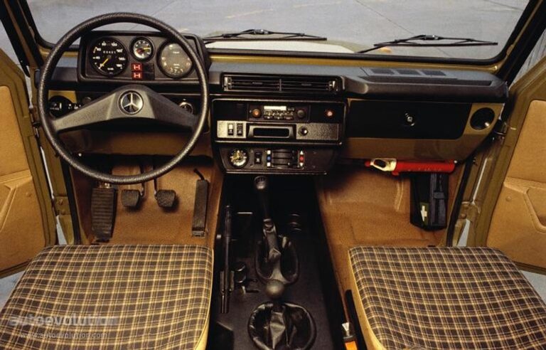 Wnętrze Mercedes-Benz zaprojektował w sposób zupełnie różniący się od innych luksusowych pojazdów tej marki. Tapicerka z materiału i kwadratowa deska rozdzielcza bardziej przypominały Furgonetkę niż drogi, luksusowy SUV. Mimo to klienci je doceniali za łatwość obsługi. Przed kierowcą znajdował się mały zestaw wskaźników z trzema tarczami. Po lewej stronie był prędkościomierz, a po prawej wskaźniki poziomu paliwa i temperatury płynu chłodzącego. Pomiędzy nimi, u góry, producent zamontował obrotomierz. W zależności od opcji, w centralnej konsoli znajdowały się radioodtwarzacz, analogowy zegar, regulator ogrzewania i popielniczka. Pomiędzy przednimi siedzeniami znajdowały się dźwignia biegów, dźwignia skrzyni rozdzielczej oraz dwa przyciski do blokowania przednich i tylnych mechanizmów różnicowych. Z tyłu, kanapa była na tyle szeroka, by pomieścić trzy dorosłe osoby, a za nimi znajdował się bagażnik.
