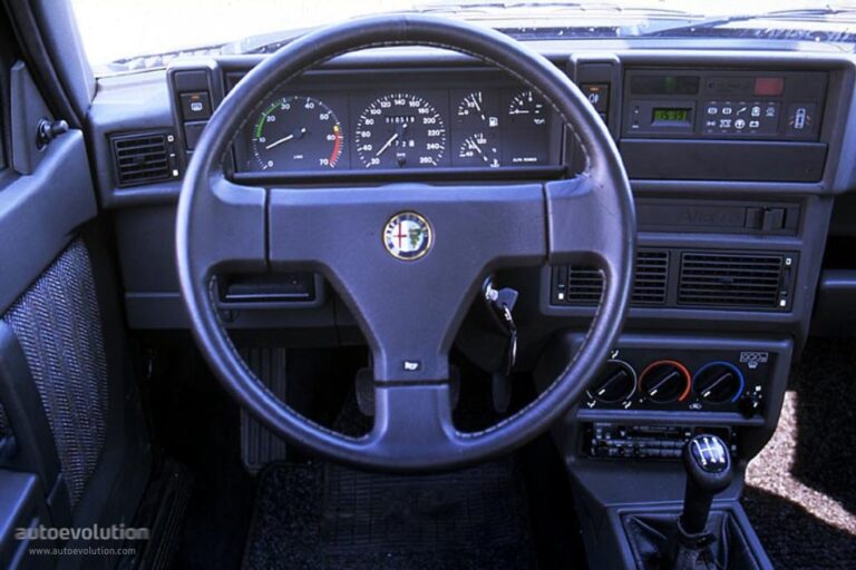 Wnętrze samochodu charakteryzowało się kwadratowym wyglądem deski rozdzielczej, na której instrumenty oraz centralna konsola były przykryte tym samym wizjerem i były skierowane w stronę kierowcy. Alfa Romeo zastosowała duże wskazówki dla prędkościomierza i obrotomierza oraz mniejsze dla pozostałych wskaźników. Na konsoli centralnej umieszczono dźwignię zmiany biegów oraz miejsce na drobiazgi. Z przodu znajdowały się kubełkowe fotele z wysokimi boczkami, które pasowały do sportowego wizerunku marki, natomiast z tyłu zamontowano płaską kanapę, na której mogły wygodnie usiąść dwie osoby.