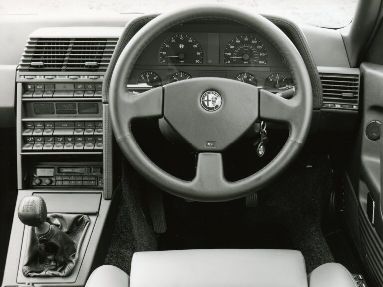 Wnętrze samochodu wyposażono w wzmocnione fotele przednie oraz kanapę dla dwóch osób z tyłu, chociaż auto mogło pomieścić pięciu dorosłych. Deska rozdzielcza nawiązywała do kształtów nadwozia i miała trapezoidalny zestaw wskaźników wypełniony miernikami, zegarami i kontrolkami. A było ich całkiem sporo. Na centralnym panelu producent umieścił jednostkę sterującą klimatyzacją i radio. W zależności od opcji, model 164 mógł być wyposażony w skórzane wnętrze, szyberdach oraz fotele przednie z regulacją elektryczną.