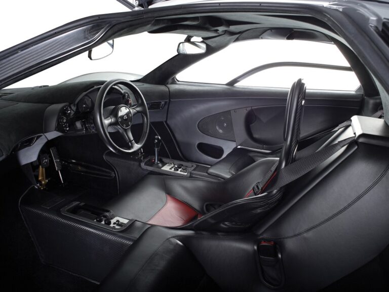 Podczas gdy zewnętrze było zaskakujące, z typowymi proporcjami dla tak szybko poruszającego się pojazdu, wnętrze było unikalne. W przeciwieństwie do innych superaut na rynku, miało centralne miejsce kierowcy. Drzwi w stylu motyla umożliwiały wsiadanie i wysiadanie nad szerokimi progami, które były częścią podwozia pojazdu. Po bokach kierowcy, z tyłu, znajdowały się dwa sportowe fotele dla okazjonalnych pasażerów. Przed kierownicą znajdował się zestaw wskaźników, w którym tachometr zajmował centralną pozycję. Flankowały go duży prędkościomierz po prawej stronie oraz trzy wskaźniki po lewej, grupujące się w jednym dialu. Zainstalowano również odtwarzacz CD. Zaskakująco, samochód miał nawet bagażnik po stronie kierowcy.
