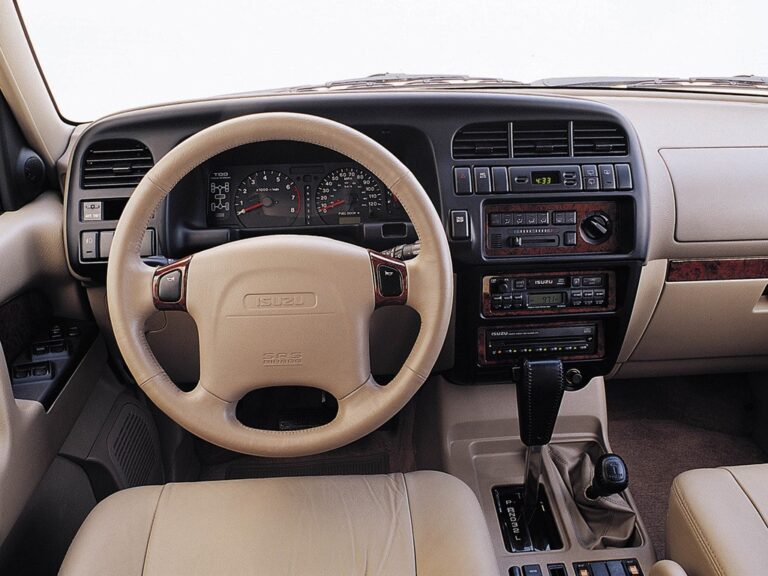 W środku klienci znaleźli przestronną kabinę, dzięki niemal pionowym bocznym oknom i długiemu rozstawowi osi. Z przodu, producent zamontował parę kubełkowych foteli oddzielonych konsolą środkową, która mieściła dźwignię zmiany biegów oraz lewarek do skrzyni rozdzielczej. Kierownica otaczała zestaw wskaźników z dużymi tarczami prędkościomierza i obrotomierza, a także dodatkowymi wskaźnikami poziomu paliwa i temperatury płynu chłodzącego. Na górze środkowego panelu, Isuzu Trooper z 1998 roku w wersji z długim rozstawem osi posiadał trzy nawiewy centralne, w przeciwieństwie do dwóch, jak w większości innych marek. Dzięki tylnym drzwiom, dostęp dla pasażerów z tyłu był łatwy dzięki dzielonej (60/40) kanapie.