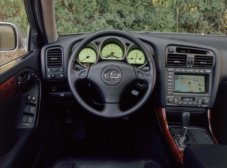 Wewnątrz, pomimo krótszego rozstawu osi, kabina była przestronniejsza niż w poprzedniku. W zależności od wersji pojazdu klienci mogli cieszyć się skórzanym wykończeniem i drewnianymi detalami na desce rozdzielczej i konsoli centralnej. Przed kierowcą znajdował się panel instrumentów w stylu binokularnym, z prędkościomierzem pośrodku i wyświetlaczem LCD na dole dla licznika kilometrów. Po lewej stronie znajdował się obrotomierz, a po prawej wskaźniki poziomu paliwa i temperatury chłodziwa, plus wskaźnik skrzyni biegów. Fotele zaprojektowano z myślą o komforcie i oferowały tylko przeciętne boczne wsparcie z przodu. Równocześnie pasażerowie z tyłu mieli dużo miejsca na nogi i głowę. Jednak przestrzeń na ramiona była wystarczająca głównie dla dwóch osób, które mogły dzielić centralną składana podłokietnik. Jak w większości innych samochodów z napędem na tylne koła, GS miał wysoki tunel środkowy, który przebiegał przez pojazd od przodu do tyłu.