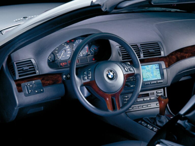W środku, skierowana ku kierowcy deska rozdzielcza była typowa dla E46 3 Series. Producent umieścił system audio na górze środkowej konsoli, a poniżej znalazły się przyciski HVAC. Standardowo, BMW 3 Series Convertible z 2000 roku miał odtwarzacz kasetowy, a opcjonalnie dostępny był zmieniacz CD. Ponadto, BMW zainstalowało system nawigacji, choć bez dużego ekranu, który pokazywałby mapę. Choć system ten nie był najlepszy na rynku, nadal potrafił poprowadzić kierowców do ich celu. Z tyłu producent musiał nieco przesunąć kanapę do przodu, aby zrobić miejsce dla chowanego, wielowarstwowego dachu z płótna. Zaskakująco, bagażnik był odpowiednio przestronny, ponieważ składany dach i jego mechanizm nie zajmowały dużo miejsca.