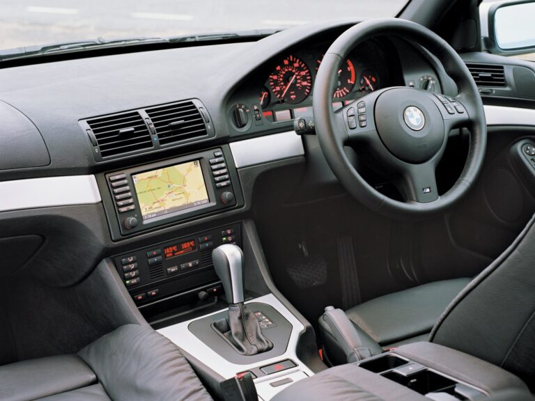 Wnętrze modelu E39 z 2001 roku dostępne było w kilku opcjach, od tapicerki materiałowej i plastikowych wykończeń po drewniane akcenty na desce rozdzielczej oraz skórzane siedzenia. Ponadto, rozszerzony pakiet skórzany obejmował również konsolę centralną. Kierowca miał do dyspozycji nową kierownicę z przyciskami kontrolującymi system audio. Klienci mogli także zamówić pojazd z pakietem M-Sport, który dodawał trzyramienną kierownicę. Na centralnej konsoli producent dodał nowy wyświetlacz systemu infotainment o proporcjach 19:6, zamiast 4:3 stosowanego w wersji przedliftingowej.
