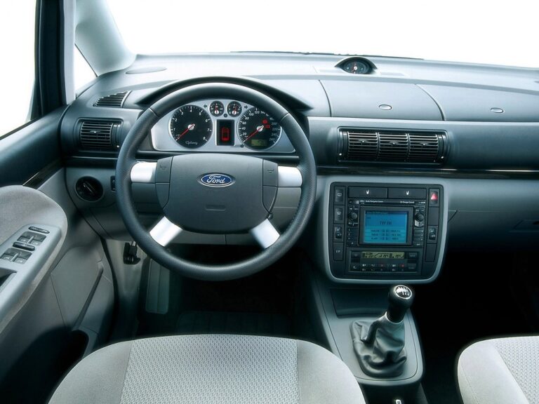 Wewnątrz Ford umieścił płaską i niską deskę rozdzielczą z kilkoma schowkami na górze i poniżej. Przed kierowcą znajdowała się deska rozdzielcza z zaokrąglonym górnym wizjerem, przypominającym ten z Volkswagena Passata. Wnętrze paneli miało duże tarcze prędkościomierza i obrotomierza oraz dwa dodatkowe wskaźniki u góry. W centralnej części umieszczono wyświetlacz LCD, który pokazywał dodatkowe informacje z komputera pokładowego. Z miejscem dla maksymalnie siedmiu pasażerów na trzech rzędach, Galaxy był odpowiednim pojazdem dla dużych rodzin lub rodziny z wieloma przyjaciółmi. Oprócz rzędu przedniego, wszystkie pozostałe siedzenia można było usunąć, tworząc ogromną przestrzeń ładunkową.