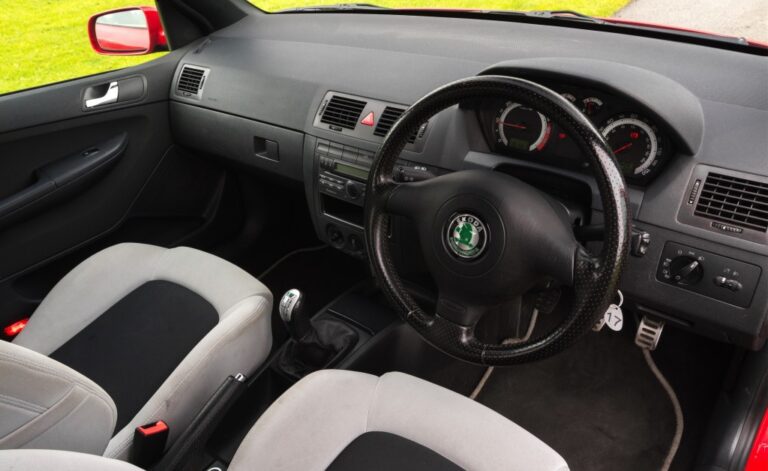 W środku samochód miał taką samą zakrzywioną deskę rozdzielczą jak Fabia hatchback. Jedynymi prostokątnymi elementami na pokładzie były kratki wentylacyjne. Łatwy w odczycie i zrozumieniu zestaw wskaźników miał wyraźne tarcze dla prędkościomierza i obrotomierza oraz wskaźniki poziomu paliwa i temperatury płynu chłodzącego umieszczone na górze. Z przodu, fotele kubełkowe były proste, z sześcioma manualnymi regulacjami. Producent zamontował w tylnej części dzieloną kanapę, która powiększała w przeciwnym razie mały bagażnik.