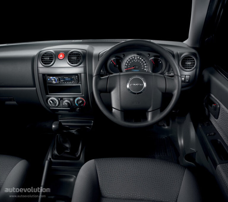 W środku, podstawowa wersja miała skromną kabinę z twardym plastikowym kokpitem. Niemniej jednak, design był zaawansowany jak na pojazd użytkowy, z krzywymi liniami. Przed kierowcą znajdował się zaokrąglony zestaw wskaźników, gdzie prędkościomierz zajmował centralne miejsce, a po lewej stronie znajdował się duży wskaźnik obrotomierza oraz po prawej stronie wskaźniki poziomu paliwa i temperatury. Dodatkowo Isuzu zainstalowało cyfrowy licznik kilometrów. Na centralnej konsoli, podstawowa wersja miała jedynie prosty system wentylacji. Niemniej jednak, klienci mogli zamówić Isuzu Rodeo Single Cab z 2002 roku z radiem i klimatyzacją.