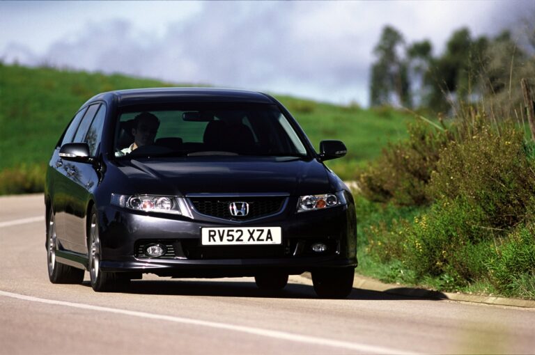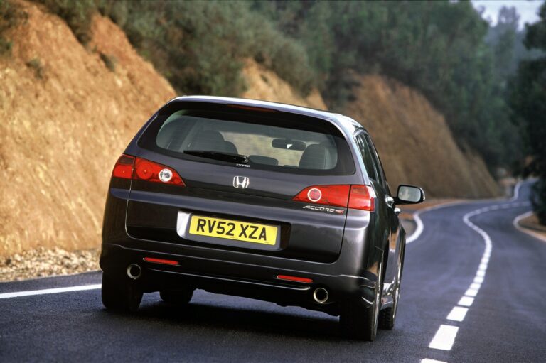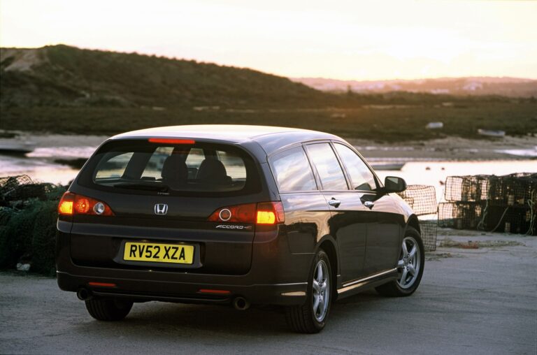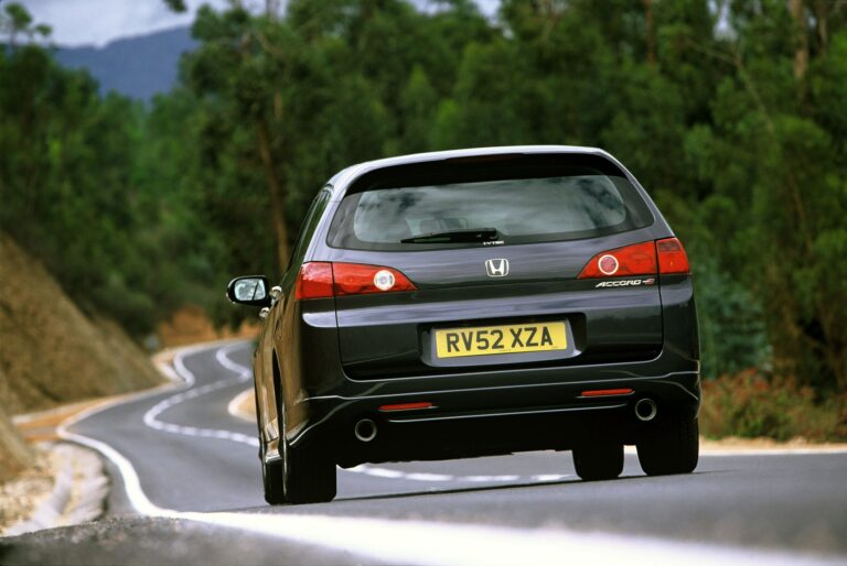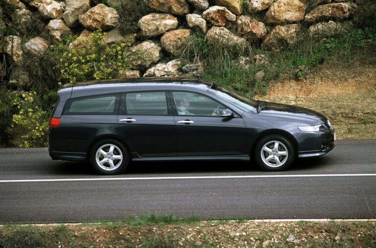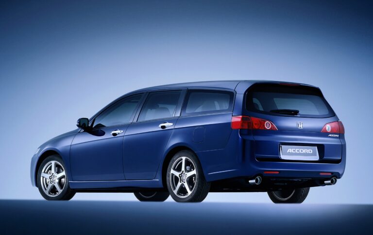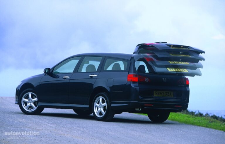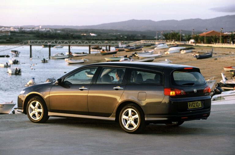 Z profilu, samochód ujawniał krótki i niski nos, za którym znajdowała się nachylona przednia szyba. Do słupka B, 2003 Honda Accord Tourer dzieliła panele nadwozia z wersją sedana. Został zaprezentowany w 2002 roku i cieszył się dużym zainteresowaniem na rynku. Wersja Tourer miała długą linię dachu, która wydłużała się znacznie poza tylne siedzenia, nad przestrzenią bagażową, a następnie opadała w pionową klapę bagażnika. Ogólny design nie był szczególnym osiągnięciem, ale producent zobowiązał się do zapewnienia przestronnej przestrzeni bagażowej, nawet jeśli wiązało się to ze zmianą wyglądu pojazdu.