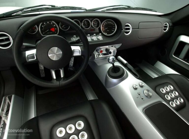 Dzięki wyższej sylwetce, samochód miał wystarczającą wysokość w kabinie nawet dla wysokich pasażerów. Mimo to, drzwi zajmowały spory kawałek dachu GT, co ułatwiało wsiadanie i wysiadanie. Producent stworzył parę foteli, które nawiązywały do tych z GT40, ale z nowoczesnymi materiałami i technologią. W efekcie, fotele sportowe z wysokim oparciem zapewniały odpowiednie wsparcie boczne podczas szybkiego pokonywania zakrętów. Ford stworzył unikalną, szeroką tablicę wskaźników wypełnioną siedmioma zegarami. Przed kierowcą znajdował się obrotomierz, a prędkościomierz był umiejscowiony nad centralnym panelem, pochylony w stronę kierowcy. Na konsoli środkowej producent umieścił dźwignię zmiany biegów oraz kilka przycisków i pokręteł.