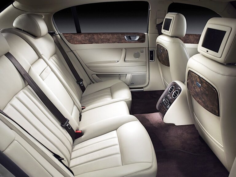 W całym samochodzie małe, ale pomysłowe detale projektowe podkreślają różnicę między Bentleyem a konwencjonalnym luksusowym salonem. Na przykład, zagłówki przednich siedzeń zostały utrzymane jak najmniejsze, aby pasażerowie z tyłu mieli niezakłócony widok. Nawet obszary za wewnętrznymi dźwigniami i uchwytami do drzwi są chronione stylową metalową płytką, która zapobiega uszkodzeniu cennego skórzanego wykończenia przez pierścionki na palcach.