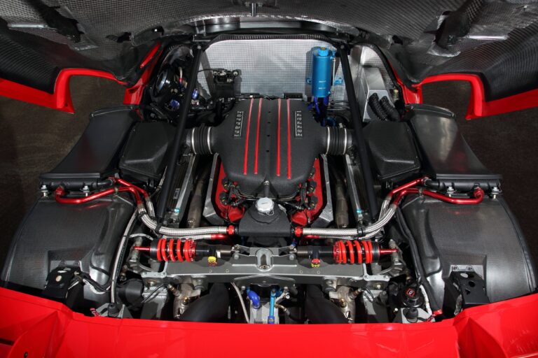 Ferrari FXX napędza imponujący silnik V12 o pojemności 6262 cm³, który generuje ponad 800 KM przy 8500 obr./min. Jego skrzynia biegów to efekt transferu strategii F1, zapewniająca czasy zmiany biegów poniżej 100 ms. To prawie tak szybko, jak w bolidach F1, które same w sobie stanowią szczytowe osiągnięcia technologiczne.