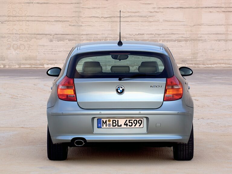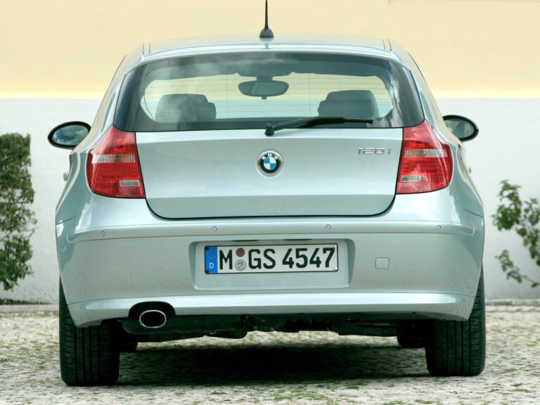 Profil samochodu przypominał pięciodrzwiową wersję, choć miał o dwa drzwi mniej. Jednak E81 wydawał się bardziej sportowy dzięki dłuższym drzwiom z bezramkowymi oknami. Co więcej, tylne boczne okna były krótsze i opadały w dół, aby wzmocnić dynamiczny wygląd pojazdu. Innym szczegółem, który pojawił się w odświeżonej wersji, była linia boczna, która przebiegała od przodu do tyłu pojazdu, wizualnie łącząc przednie błotniki z tylnymi światłami. Z tyłu, lekko pochylone do przodu tylne okno klapy bagażnika zdobił spoiler dachowy. Światła tylne również przeszły modernizację, miały dwa przezroczyste soczewki – jedną dla świateł cofania, a drugą dla kierunkowskazów. Na koniec, tylny zderzak był gładki, ponieważ nie miał rzeźbionej linii z boku na bok.