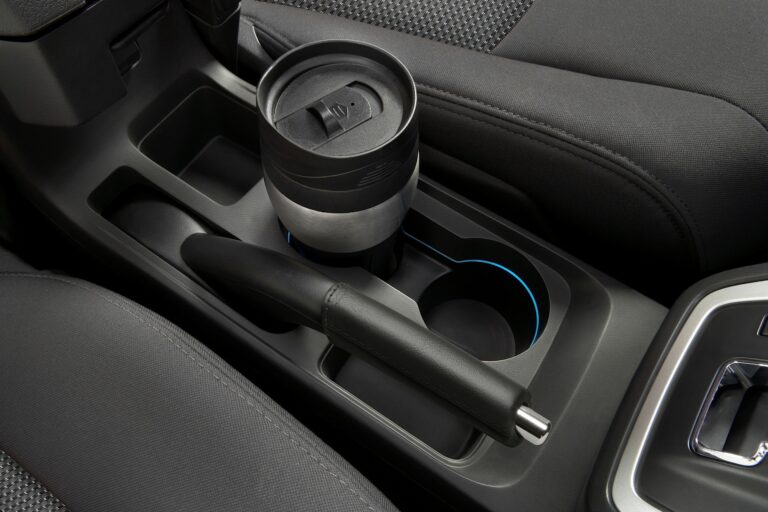 + Podświetlane pierścienie kubków w przednich uchwytach świecą na zielono, aby pasować do innych świateł w centralnej konsoli