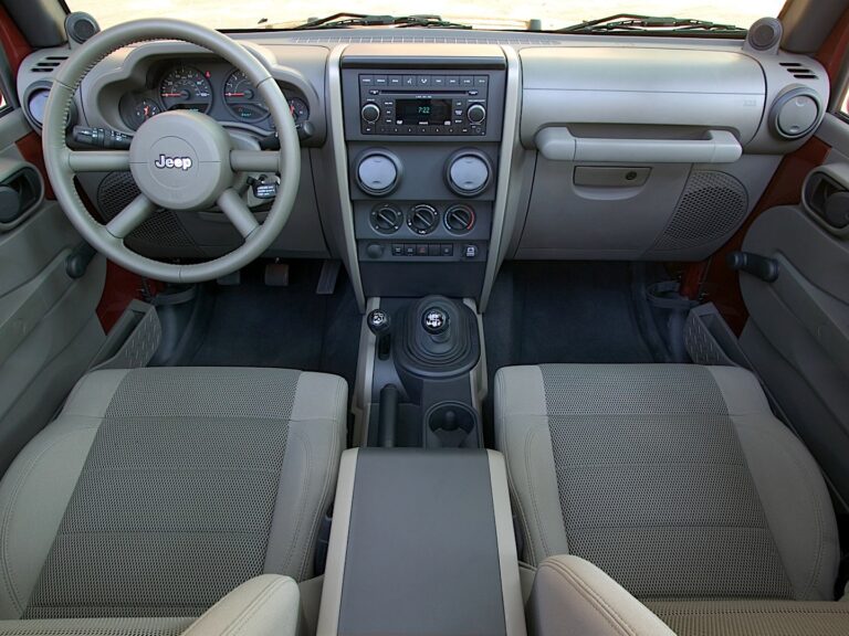 Wnętrze było podobne do reszty serii Wrangler, z modułowym plastikowym panelem deski rozdzielczej. Zespół wskaźników zawierał duże tarcze dla prędkościomierza i obrotomierza, a także mniejsze wskaźniki poziomu paliwa i temperatury chłodziwa. Oprócz radia, w centralnej konsoli znajdowały się przyciski do zablokowania osi i rozłączenia stabilizatora. Pomiędzy przednimi pasażerami, na konsoli środkowej, producent umieścił dźwignię zmiany biegów (lub selektor biegów automatycznej skrzyni biegów, w zależności od opcji) oraz dźwignię do napędu na cztery koła. Jak w każdym innym trójdrzwiowym Wranglerze, pasażerowie z tyłu nie mieli zbyt wiele miejsca na nogi, mimo że rozstaw osi był o dwa cale (5 cm) dłuższy w porównaniu do Wranglera TJ.