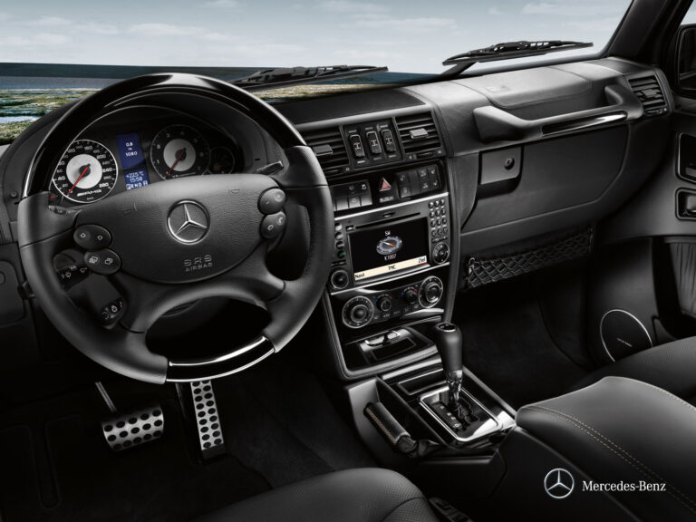 Dzięki najnowszym zmianom wizualnym, Mercedes-Benz dodał kolejne akcenty klasy do swojego terenowego klasyka. Szczególnie widoczne jest to we wnętrzu klasy G, gdzie nowa deska rozdzielcza nadaje wnętrzu wyrafinowany charakter. Cztery okrągłe analogowe wskaźniki z chromowanymi pierścieniami stanowią centrum informacji dla kierowcy. Eleganckie koło kierownicy z czterema ramionami, również w nowym designie, posiada podświetlane przyciski, które kierowcy mogą łatwo naciskać kciukami, aby wywołać różne dane lub kontrolować określone funkcje, nie odwracając uwagi od drogi. Model G 320 CDI ma standardowo skórzaną tapicerkę na kole kierownicy, podczas gdy luksusowa wersja z drewnem i skórą jest dostępna dla kierowców modeli G 500 i G 55 AMG.