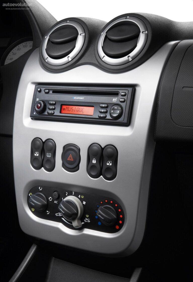 Dacia była znana jako pojazd przyjazny dla budżetu, ale to prowadziło również do wnętrz o przeciętnym wyglądzie, niezależnie od wersji pojazdu. Wszystkie wersje były wyposażone w tę samą twardoplastikową deskę rozdzielczą. Przed kierowcą znajdował się analogowy panel instrumentów z małym wyświetlaczem LCD pomiędzy dużym obrotomierzem a prędkościomierzem. Dodatkowo, producent umieścił kilka kontrolek ostrzegawczych nad monochromatycznym wyświetlaczem. Na centralnej konsoli Dacia umieściła radio, a poniżej znajdowały się przyciski do szyb przednich. Niżej, Sandero miało pokrętła do wentylacji lub klimatyzacji, jeśli była zamontowana. Wysokie fotele z przodu były pokryte materiałem, niezależnie od wersji samochodu. Z tyłu, kanapa mogła pomieścić do trzech pasażerów podczas krótkich przejazdów, ale osoba siedząca na środku nie miała wystarczająco miejsca na nogi.