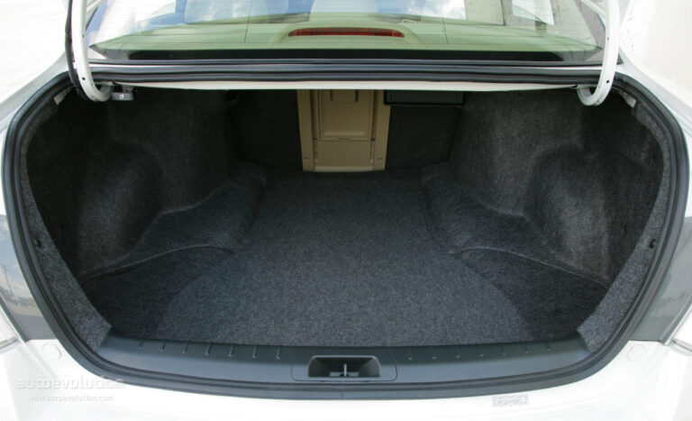 W środku, prostokątna deska rozdzielcza zintegrowana była z ośmiocalowym wyświetlaczem kolorowym dla systemu multimedialnego. Duże i wygodne przednie siedzenia były lekko wyprofilowane i oddzielone konsolą środkową, w której znajdowało się automatyczne skrzynia biegów, kilka uchwytów na kubki oraz przyciski do dostępnych podgrzewanych siedzeń. Przed kierowcą znajdował się czytelny panel wskaźników z dużymi tarczami prędkościomierza i obrotomierza, flankingowany przez wskaźniki poziomu paliwa i temperatury wody. Dostępny był również elektryczny szyberdach. Z tyłu, przestrzeń na nogi była znakomita, co czyniło go odpowiednim dla dużego sedana.