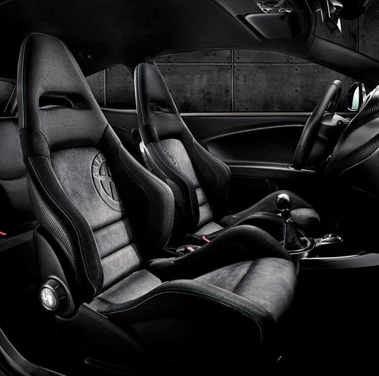 Jednak Alfa Romeo nie chciała pozostawić wnętrza bez wpływu detali inspirowanych wyścigami. W efekcie, deska rozdzielcza oraz panele drzwiowe zostały ozdobione elementami z włókna węglowego. Najbardziej rzucającym się w oczy elementem były jednak sportowe siedzenia z wbudowanymi zagłówkami. Posiadały one mocno wyprofilowane miejsca, które miały na celu utrzymanie pasażerów w miejscu podczas szybkich zakrętów. Alfa Romeo oferowała również opcję tapicerki z mieszanki Alcantary i skóry. Przed kierowcą znajdował się ten sam przyrząd w stylu binokli, wypełniony dużymi wskazówkami prędkościomierza i obrotomierza. Pomiędzy nimi producent zainstalował wyświetlacz TFT, który pokazywał dane z pokładowego komputera samochodu. Na konsoli centralnej kierowcy znajdowali dźwignię zmiany biegów oraz przycisk systemu DNA, który kontrolował zawieszenie, hamulce i zarządzanie silnikiem. Z tyłu, poza tapicerką, nie dokonano żadnych zmian.