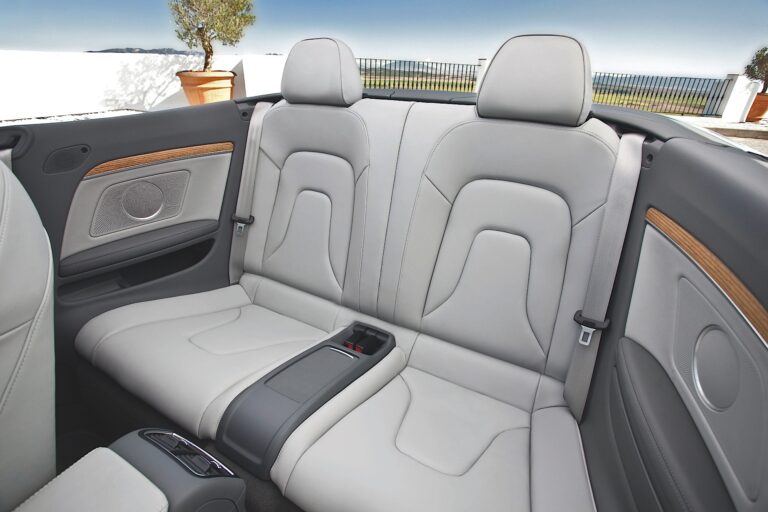 Dzięki długiemu rozstawowi osi wynoszącemu 2,75 metra (9,02 stopy), Audi A5 Cabriolet oferuje przestronność wnętrza; otwarty czteroosobowy ma dużo miejsca na dłuższe podróże. To samo dotyczy sportowo ukształtowanych tylnych siedzeń, które można opcjonalnie wyposażyć w konsolę środkową z uchwytem na napój z dwoma uchwytami i pokrywą, w tym komorą do przechowywania pod przednim siedzeniem pasażera.
