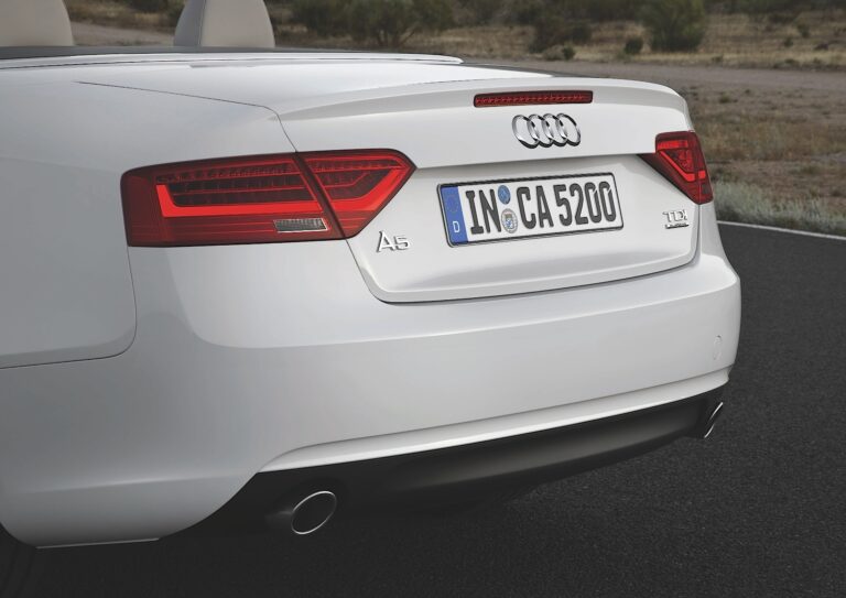 Materiałowy dach z dużym, płaskim tylnym oknem idealnie wpisuje się w elegancki profil Audi A5 Cabriolet i harmonizuje znacznie lepiej niż składany dach stalowy. Jest również znacznie lżejszy, co redukuje ogólną wagę i obniża środek ciężkości. Metalowy dach przyniósłby dodatkowe wady, których Audi zdecydowanie odmawia – szerokie, widoczne szwy na dachu i tylnej części oraz ograniczona przestrzeń bagażowa.