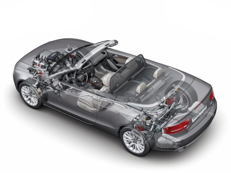 Jak każde Audi, A5 Cabriolet ma niezwykle sztywne nadwozie. To główny powód jego precyzyjnego, sportowego prowadzenia, wysokiego komfortu jazdy oraz wysokiego bezpieczeństwa w razie kolizji. W otwartym A5 nie można odczuć żadnych drgań ani wibracji, nawet w kierownicy ani na siedzeniach – „punkty komfortu”.