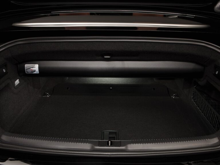 Tylna klapa bagażnika z elektrycznym zamkiem odsłania otwarcie wystarczająco duże, aby pomieścić dwie torby golfowe. Niski próg załadunkowy ułatwia załadunek i rozładunek. Standardowy deflektor wiatru, rozciągnięty nad tylnymi siedzeniami, można przechowywać w komorze na zapasowe koło, gdy nie jest używany, pod warunkiem, że opcjonalne kompaktowe koło zapasowe nie jest na pokładzie.