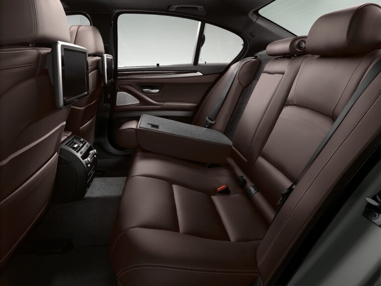 Pozycja siedzenia została poprawiona w porównaniu do poprzedniego modelu zarówno z przodu, jak i z tyłu, a przestrzeń na nogi w tylnych fotelach nowego BMW serii 5 zwiększyła się o 13 mm lub 0,5″. Pojemność bagażnika wynosi 520 litrów lub 18,2 stopy sześciennej, a opcjonalne składane oparcie tylnej kanapy zapewnia większą elastyczność w powiększaniu możliwości transportowych samochodu. Oprócz dzielonego w stosunku 40:60 tylniego oparcia kanapy, dostępna jest również możliwość przeładunku oraz dodatkowo opcjonalna torba narciarska dla większej wygody.