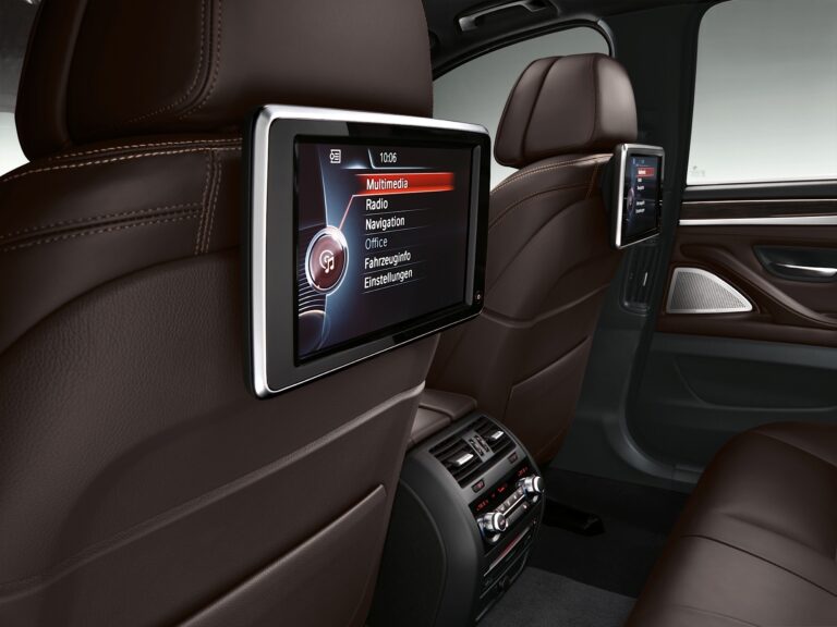 W nowym sedanie BMW serii 5 po raz pierwszy pojawia się sterownik iDrive czwartej generacji w dwóch wersjach: standardowa 7-calowa o rozdzielczości 800 x 480 pikseli lub opcjonalny system nawigacji w oszałamiającej wersji 10,2 cala o rozdzielczości 1280 x 480 pikseli, oferujący szerszy zakres funkcji i możliwości niż w nowym BMW serii 7. Wyświetlacze są transrefleksyjne, dzięki czemu światło słoneczne faktycznie poprawia obraz na ekranie.