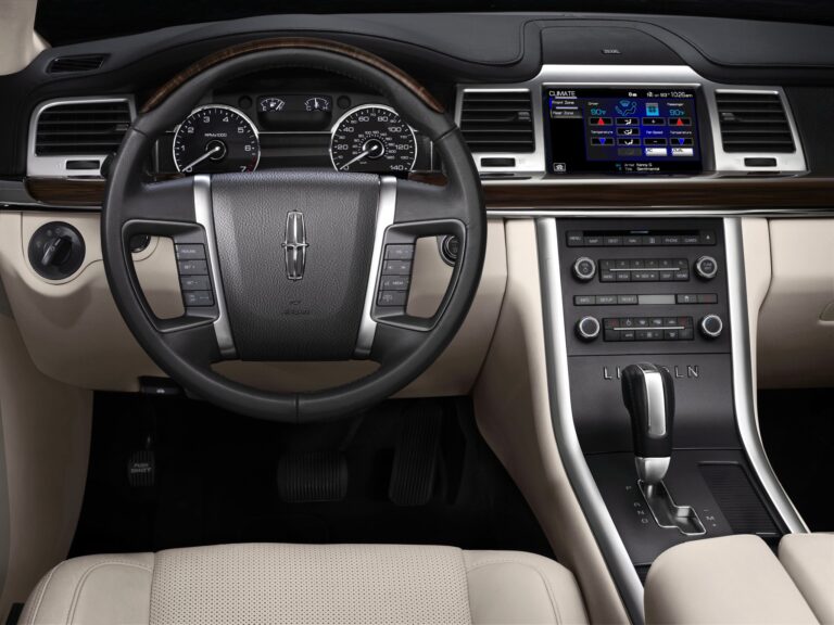 Wnętrze jest eleganckie. Na przykład, symetryczny panel wskaźników Lincoln MKS ma mniej linii podziału niż inne luksusowe pojazdy. Centrowana konsola jest czysta i nieprzeładowana, z ekranem informacyjnym zintegrowanym na górze. Duża konsola centralna ma podzieloną, dwuczęściową, wyściełaną górną sekcję. Każda sekcja przesuwa się indywidualnie do przodu, tworząc podłokietnik.