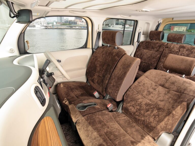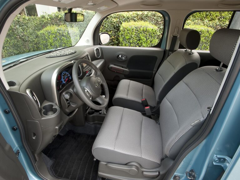 Wygodne fotele w Nissanie Cube obejmują indywidualne siedzenia dla kierowcy i pasażera oraz przesuwane tylne siedzenie w stylu „sofy lounge.”