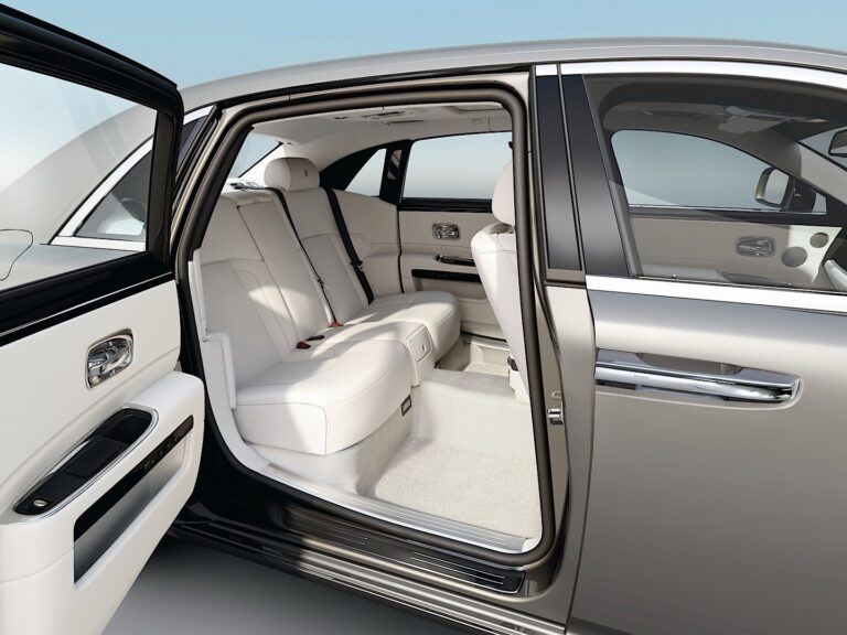 W przestronnych drzwiach i wysokiej linii ramion Rolls-Royce Ghost pasażerowie czują się spokojnie, otuleni i bezpieczni. Z tyłu, intymna atmosfera sofy jest podkreślona przez jej położenie za słupkiem C, co zwiększa poczucie prywatności. Nieformalne siedzenia tworzą przyjemne środowisko, a ich delikatne wygięcie pozwala na łatwiejsze obrócenie się w stronę osoby obok. Ich wysoka pozycja zapewnia doskonały widok za elektronicznie chowanym Duchem Ekstazy na drogę przed sobą.