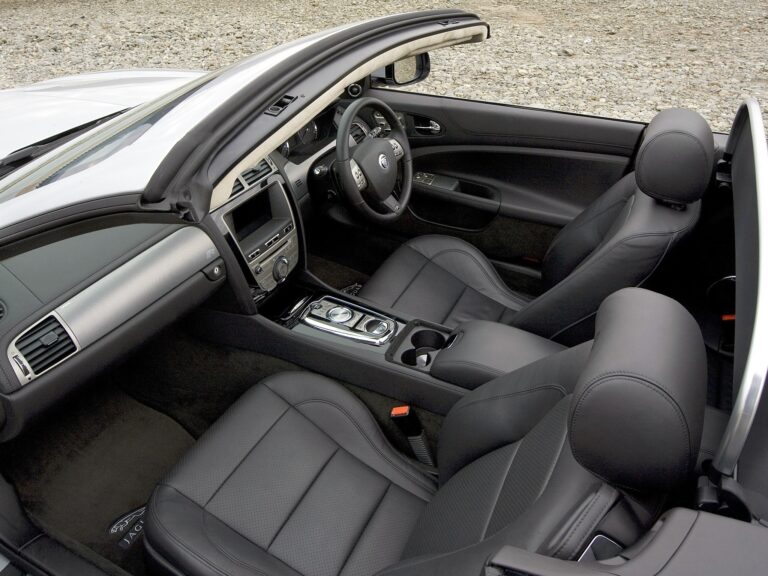 Wnętrze pojazdu zostało zaprojektowane od podstaw z myślą o kierowcy. Z przodu znajdowały się dwa fotele z wysokimi boczkami, oddzielone wąskim środkowym konsolą, która mieściła selektor biegów, kilka uchwytów na napoje oraz schowek pod centralnym podłokietnikiem. Na centralnej konsoli umieszczono standardowy wyświetlacz dotykowy systemu infotainment. W zależności od rynku, XKR Convertible oferował radio satelitarne lub radio DAB. W konsoli instrumentów umieszczono duże wskaźniki prędkościomierza i obrotomierza, które flankowały wyświetlacz LCD pokazujący dane z komputera pokładowego. Z tyłu dodano ławkę profilowaną dla dwóch osób, jednak z tak małą ilością miejsca, że trudno było tam się zmieścić.