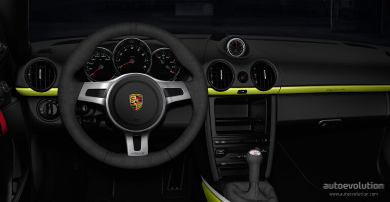 Wewnątrz, producent wprowadził znaczące zmiany w porównaniu do Caymana S. Zainstalowano standardowe lekkie fotele z centralnymi częściami pokrytymi Alcantarą i skórzanymi bokami. Co więcej, osłona nad trzema wskaźnikami została usunięta. Pasażerowie musieli korzystać z czerwonych pasków do wyjścia z pojazdu, ponieważ uchwyty zostały usunięte. W centralnej konsoli nie było klimatyzacji ani systemu audio, chociaż te elementy były dostępne bez dodatkowych kosztów. Klienci mogli zamówić pojazd z wnętrzem wykończonym skórą lub z sportowymi fotelami z wbudowanymi zagłówkami.