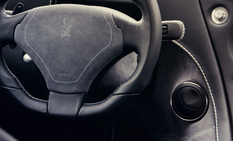 W środku kabina była mała, wystarczająco szeroka tylko dla dwóch osób. Jednak nie brakowało w niej luksusowych udogodnień, takich jak pikowana Alcantara na sportowych fotelach z wysokim oparciem i skórzanych bokach. Przed kierowcą znajdowała się jedynie mała deska rozdzielcza z kilkoma wyświetlaczami, podczas gdy główne wskaźniki umieszczono na centralnej konsoli. Specjalna przestrzeń do przechowywania między fotelami pomieściła złącze do telefonu lub odtwarzacza MP3, a także przyciski do podgrzewania siedzeń i regulacji elektrycznych lusterek bocznych.