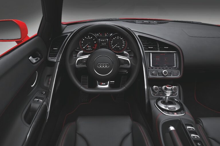Wnętrze Audi R8 Spyder 4.2 FSI quattro charakteryzuje się trzema mocnymi stronami: bezkompromisową jakością materiałów, dużą przestronnością oraz wysoką praktycznością.