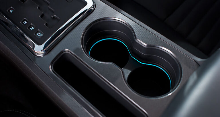 Obok oświetlonych diodami kubków w Dodge Challengerze, nowy ręcznie szyty uchwyt zmiany biegów owinięty skórą jest teraz standardem i zapewnia lepsze odczucie podczas przełączania między biegami z automatycznej skrzyni biegów coupe.