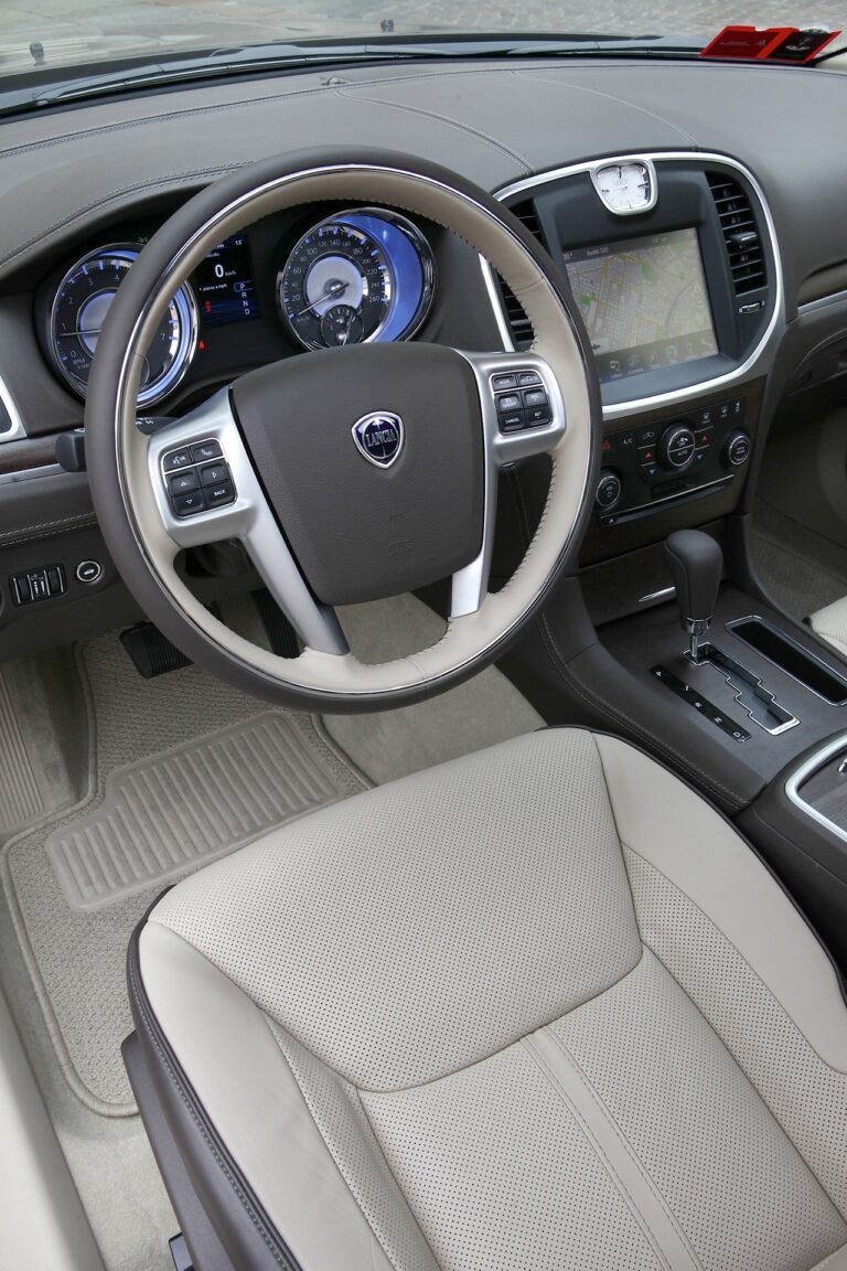 Flagowiec Lancia z napędem na tylne koła ma hojne wymiary – mierzy 5066 mm długości, 1488 mm wysokości, 1902 mm szerokości i ma rozstaw osi wynoszący 3052 mm – i oferuje klasyczne proporcje, które zyskały wyrazisty styl, w którym dominują mocne osobowości.