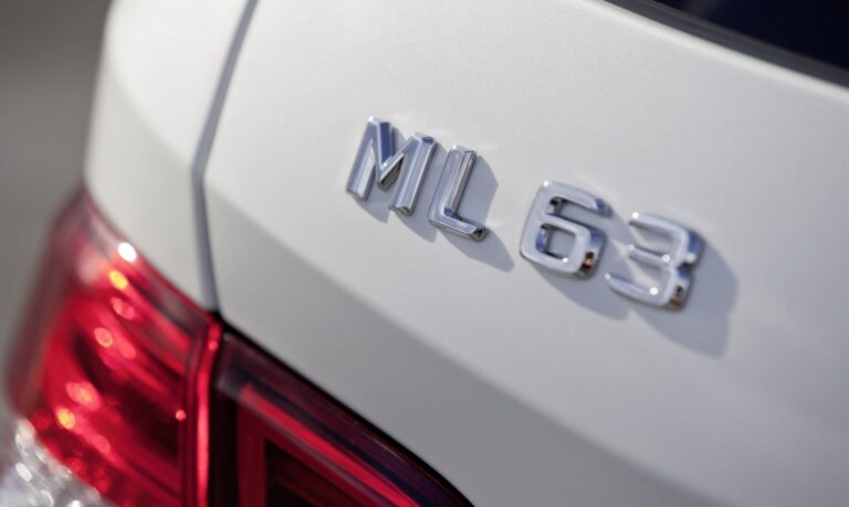 Na zewnątrz, ML63 AMG z 2011 roku prezentował się odważnie i muskularnie, co nadawało mu dominującą obecność na drodze. Z przodu producent zamontował LED-owe światła do jazdy dziennej w zderzaku, w formie linii, nad bocznymi wlotami, które flankowały dolny, A-kształtny wlot powietrza. Górny grill miał trzy chromowane listwy, które wspierały emblemat w postaci trójramiennej gwiazdy, ukrywający radar dla adaptacyjnego tempomatu oraz innych systemów bezpieczeństwa. Z profilu, powiększone błotniki nawiązywały do designu poprzedniej generacji ML, podczas gdy lusterka boczne miały V-kształtne kierunkowskazy skierowane na zewnątrz. Na koniec, z tyłu, najmocniejsza wersja AMG miała dwie pary prostokątnych końcówek wydechowych umieszczonych pod zderzakiem, flankujących dyfuzor w stylu siatkowym. AMG ozdobiło tylną klapę spoilera, aby dopełnić sportowy wygląd.