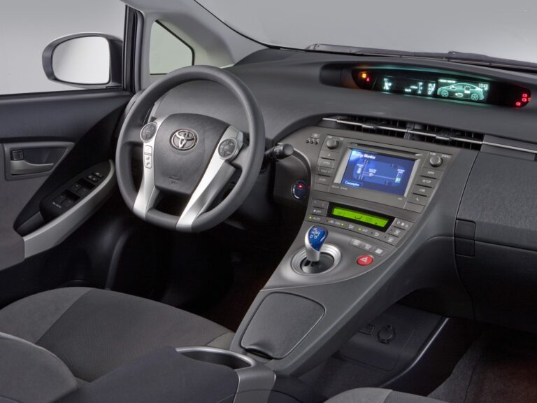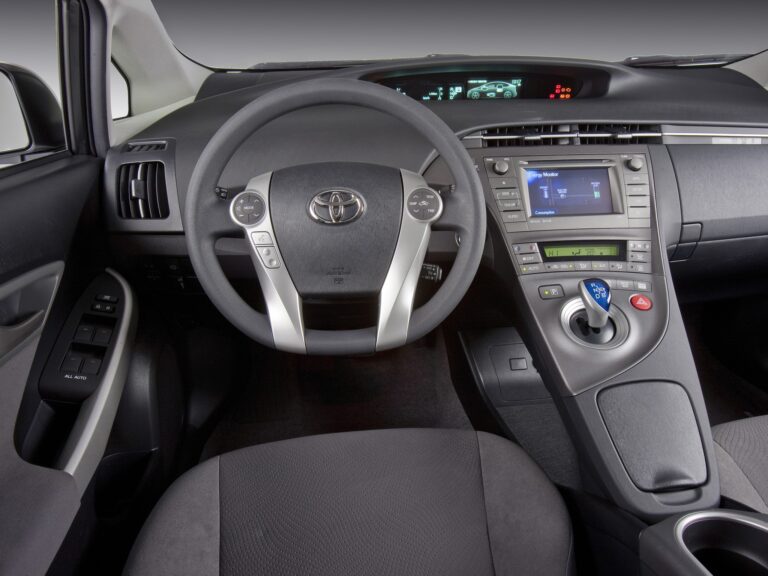 Wnętrze Priusa podniosło jakość sensoryczną, dzięki dostępności nowego, czarnego wnętrza, dodatkom srebrnych akcentów do nawiewów i konsoli środkowej, niebieskiemu przyciskowi startu hybrydowego oraz nowym, wysokiej jakości tapicerkom na siedzenia.