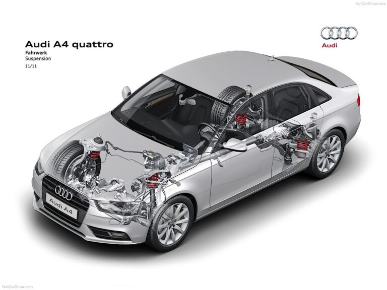 Stały napęd na cztery koła quattro jest standardem w Audi A4 allroad quattro, a w Sedanach i Avantach dostępny od 2.0 TDI o mocy 105 kW (143 KM). Rodzina A4 wykorzystuje samoblokujący centralny dyferencjał. W regularnym trybie jazdy najpierw przekazuje moment obrotowy do tylnych kół w proporcji 40 do 60. W razie potrzeby następuje redystrybucja w jak najkrótszym czasie. Funkcja wektoryzacji momentu obrotowego uzupełnia pracę centralnego dyferencjału drobnymi zastosowaniami hamulca, aby jeszcze bardziej precyzyjnie i bezpieczniej prowadzić pojazd.