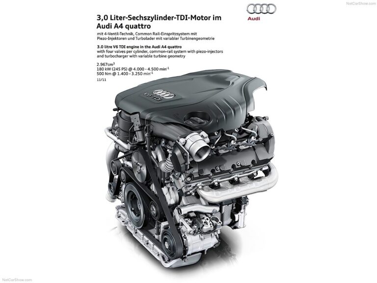 Dodatkowo dostępne są trzy inne czterocylindrowe silniki diesla – o mocach 88 kW (120 KM), 105 kW (143 KM) i 130 kW (177 KM). Można je również zamówić dla wersji allroad quattro, z wyjątkiem wersji podstawowej. Trzy jednostki V6 TDI uzupełniają ofertę. 3.0 TDI o mocy 150 kW (204 KM) (nie dla allroad quattro) jest najbardziej efektywnym silnikiem sześciocylindrowym w swojej klasie na świecie; w A4 Sedan zużywa średnio zaledwie 4,9 litra paliwa na 100 km (48,0 mpg amerykańskich). Druga wersja, 3.0 TDI, generuje 180 kW (245 KM), w szczególnie czystej wersji diesla.