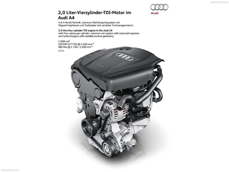 Silniki TDI łączą moc z nowatorską efektywnością, a wersje czterocylindrowe przeszły znaczne modyfikacje. Nowy odśrodkowy absorber typu wahadłowego (w 2.0 TDI o mocy 100 kW, 120 kW lub 130 kW z napędem quattro) w dwumasowym kole zamachowym sprawia, że praca silnika jest jeszcze bardziej wyrafinowana i cichsza przy niskich obrotach, co umożliwia jeszcze wcześniejsze zmiany biegów i oszczędności wynoszące do 0,2 litra na 100 km.