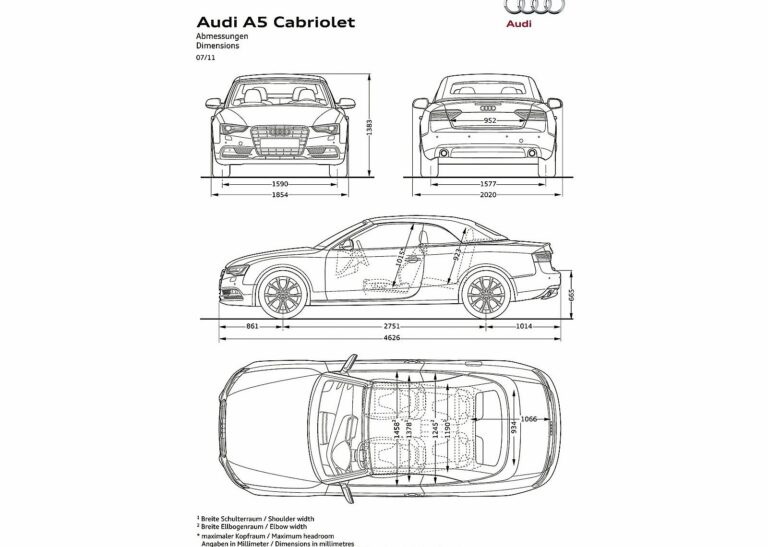 Z profilu, wersja kabriolet A5 z 2011 roku dzieliła większość paneli nadwozia (błotniki i drzwi) z wersją coupe. Producent również zwiększył całkowitą długość samochodu o 10 mm (0,4 cala) w wyniku przebudowy zderzaków. Dodatkowo samochód był wyposażony w 18-calowe lekkie felgi o nowym designie, co poprawiło sportowy wygląd pojazdu. Pojawiły się także nowe opcje kolorów zewnętrznych, osiągając łącznie 16 wariantów. Kolejną istotną aktualizacją były tylne światła. Oferowano je z nowymi, ciągłymi paskami LED, co poprawiło wygląd pojazdu. Dolna część tylnego zderzaka miała zmodyfikowany kształt, w zależności od wersji pojazdu.