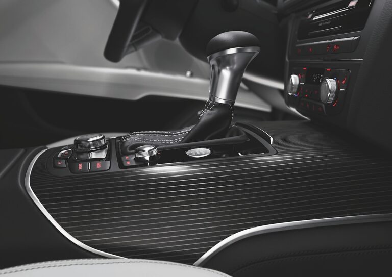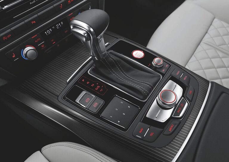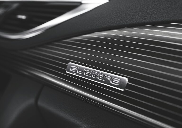 Audi S7 Sportback ukazuje swój sportowy charakter również we wnętrzu. Widać to w licznych detalach – emblematy S, czerwony pierścień na przycisku start-stop, logo S7 w podświetlanych listwach progowych, aluminiowe wstawki na dźwigni S tronic oraz aluminiowe łopatki zmiany biegów. Podnóżek i pedały wykonane są ze stali nierdzewnej, a miękkie przyciski systemu MMI mają wykończenie w stylu aluminium.