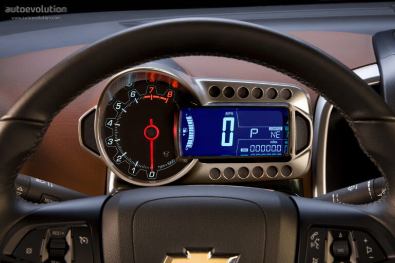 Wnętrze Chevrolet Sonic’a nawiązuje do motocyklowego designu z detalami w postaci dużego, okrągłego analogowego obrotomierza w asymetrycznym wyświetlaczu LCD, z dużym cyfrowym wyświetlaczem prędkościomierza.